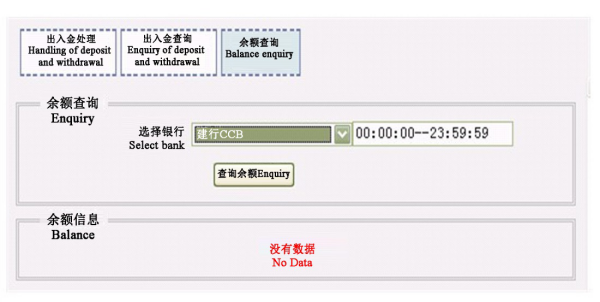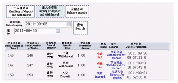 The traders can use the client-side to submit application for deposit and withdrawal, and inquire the application of deposit and withdrawal and the balance.