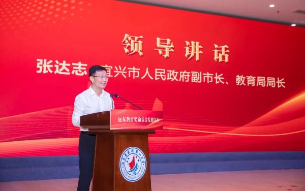 张达志代表宜兴市人民政府、市教育局,向远东控股集团捐资助学的爱心善举致以深切谢意!并向受到表彰的学生表示衷心的祝贺!向长期以来关心支持宜兴教育发展的各界人士表示诚挚的感谢!