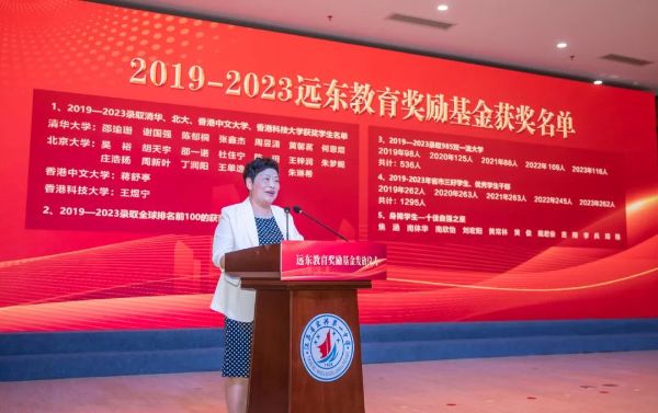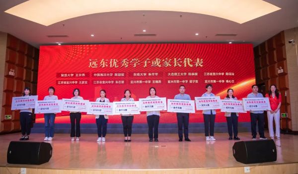张达志、张菁、蒋锡培、陈晓芬分别上台为录取清华北大、“双一流”大学及省市三好优干、远东优秀学子或家长代表颁奖。