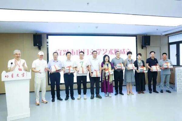 9月12日,宜兴市山月文学艺术院成立揭牌仪式在宜兴市党群服务中心(枫隐社区)隆重举行。中国作家协会原副主席吉狄马加,中国少数民族作家学会秘书长尹汉胤,江苏省作家协会名誉主席范小青、原副主席储福金,《青春》杂志总编辑李樯,无锡工艺职业技术学院副院长王超,无锡市文体旅游局党委副书记、副局长柳永红,文联副主席周军,文联副主席、作家协会主席黑陶,宜兴市人大常委会副主任温秀芳,政协副主席周斌,中共宜兴市委组织部副部长、非公有制企业和社会组织工委书记王卫,宜兴市文体广电和旅游局党委书记、局长王赛军,文联主席夏侯岭,档案史志馆副馆长朱峻峰,宜城街道党工委宣传委员黄霞,宜兴市哲学社科联四级主任科员唐平平,文体广电和旅游局原局长许夕华,档案局原副局长宗伟方,宜城街道枫隐社区党总支书记徐佳倩,宜城街道谈家干社区总支书记万立富,湖?镇邵东村总支书记谢鸣,丁蜀镇上坝村总支书记周培育,无锡市经济学会副会长王炜,中共宜兴市委宣传部文艺科印芝原,中国工艺美术大师李守才、吕俊杰等相关领导专家,以及支持单位、书画陶瓷艺术文学届、文艺工作者代表和媒体出席活动。活动由宜兴市民协主席、工美学会理事长、紫砂艺术研究院院长卫江安主持。蒋锡培出席活动并致辞,张少阳随行。