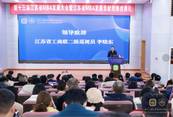 江苏省工商联二级巡视员李晓东发表致辞。李晓东认为,近年来全省MBA教育针对新一轮科技革命和产业变革的新形势新要求,不断探索商科教育和产业变革的融合发展,深度融合新商科、新产业、新模式。面对科技创新的新浪潮和日新月异的新业态,未来新商科教育的发展方向和路径探讨和研究正是此次举办论坛的目的之所在。李晓东就 MBA 企业家联谊会工作提出三点意见:一是要提升发展信心,把服务高质量作为新时代工作的出发点。二是要适应时代形势,把改革创新作为商科教育未来的着力点。三是要坚持内联外引,把品牌建设作为MBA办会的增长极。