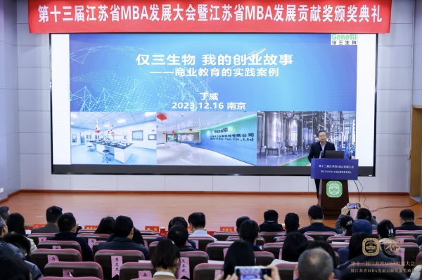 仅三生物科技创始人兼董事长丁威发表《仅三生物——商业教育的实践案例》演讲。