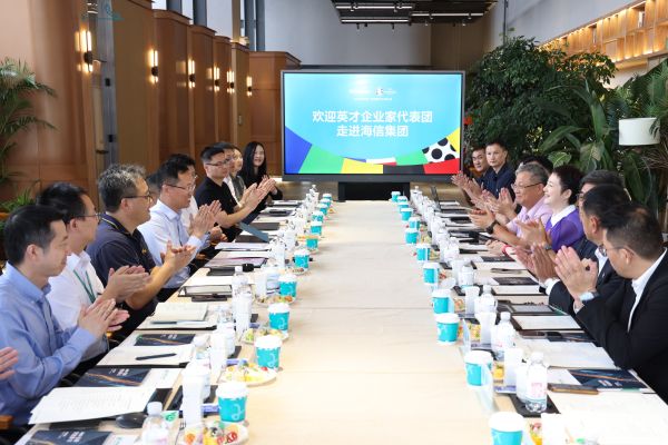 海信集团董事长贾少谦对英才企业家代表团的到访表示欢迎,并简要介绍了海信集团的发展概况。他表示:海信从一个小工厂到年收入突破2000亿元历经了55年的里程,脱胎于传统家电制造业,不断转型升级,从toC到toB、toG,期间是不断的技术创新、全球化和多元化的尝试和运营。中国企业能从追随者发展到如今能够有机会和世界性品牌同台竞技,背后就是源于创新学习以及不断的自我驱动。海信集团也愿意和代表团企业一道,不断加强在数字经济、智能制造时代的强强联合,服务经济社会高质量发展。