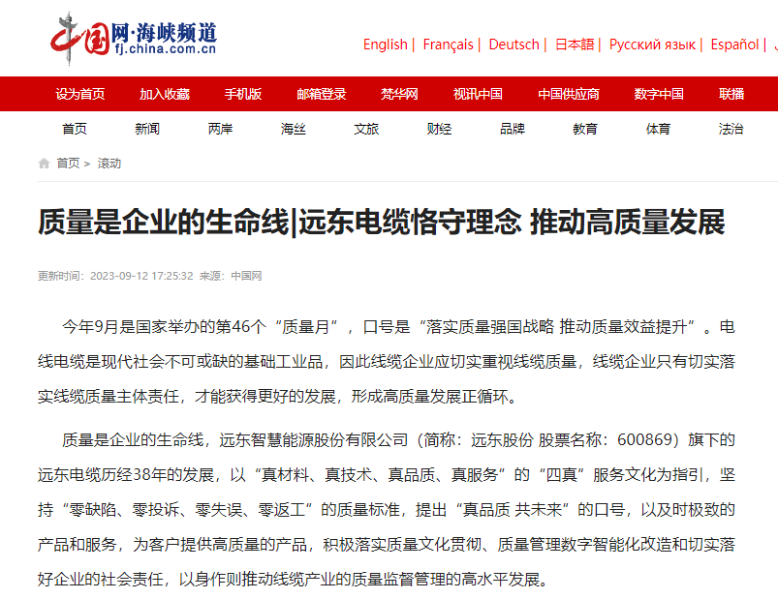 中国网点赞:远东电缆打造高质量发展正循环体系
