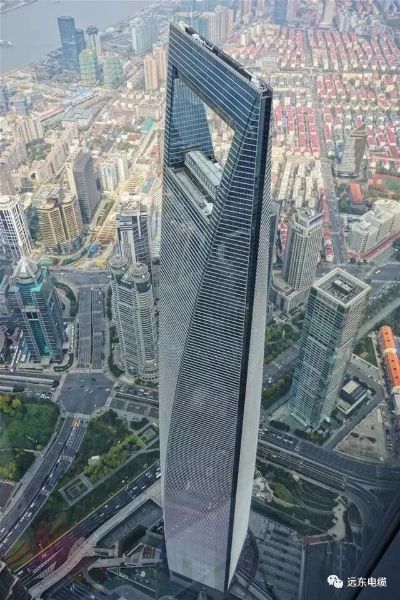 早在2008年,远东电缆就作为国内首家自主研发超高层建筑用吊装电缆及垂吊敷设施工的供应商,为上海环球金融中心供货超高层建筑10KV吊装电缆,最长的一根708米,重达14吨,吊装高度从131至400多米。经过地下水平段、垂直段、高层水平段安装,这在当时的国内建筑垂吊敷设施工中尚属首次。